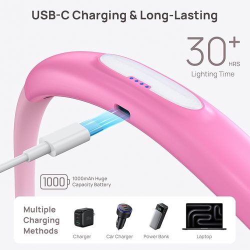• USB-C Rechargeable & Long-Lasting: This neck light with USB-C rechargeable design is more convenient to plug in compared with other reading lamps charged with Micro-USB. 1000mAh rechargeable battery provides up to 30h working time. This long lasting book lamp is perfect for reading in the living room, bedroom, dorm room, car, etc.