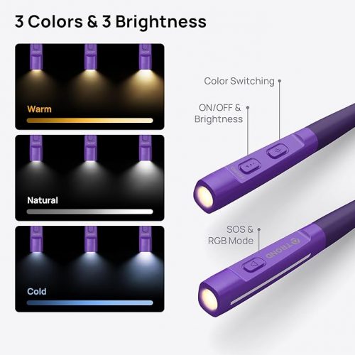 • 3 Colors & 3 Brightness: This neck reading light offers 3 color temperature modes (2800K warm white, 4000K natural daylight, 5500K cold white) and 3 brightness levels (Max 120 lumens), which is brighter than regular book lights (60 lumens), allowing you to choose a setting as you wish for reading, knitting, repairing or camping, etc.